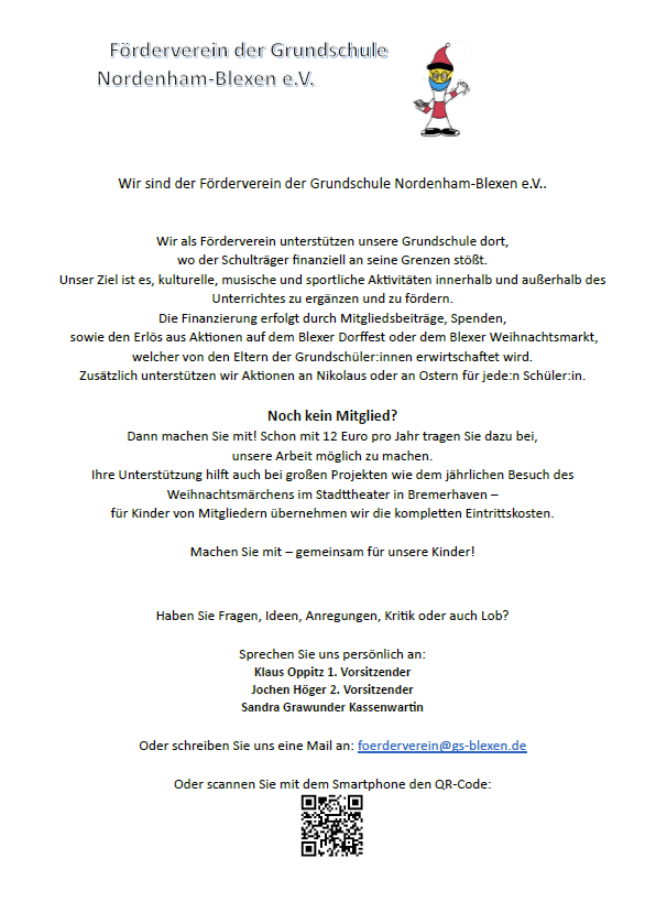 Förderverein Die diesjährige Jahreshauptversammlung findet statt am Montag, den 17. November 2025 in der Mensa der Grundschule.